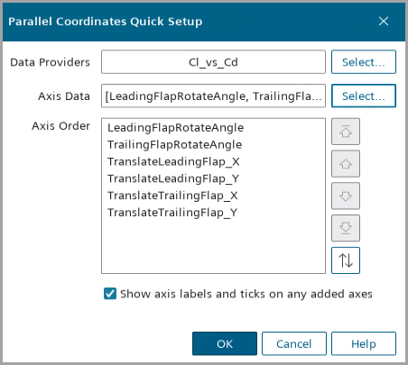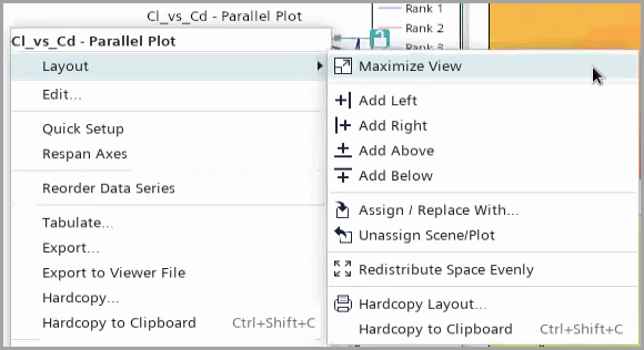 To maximize the parallel coordinates plot, right-click the Cl_vs_Cd