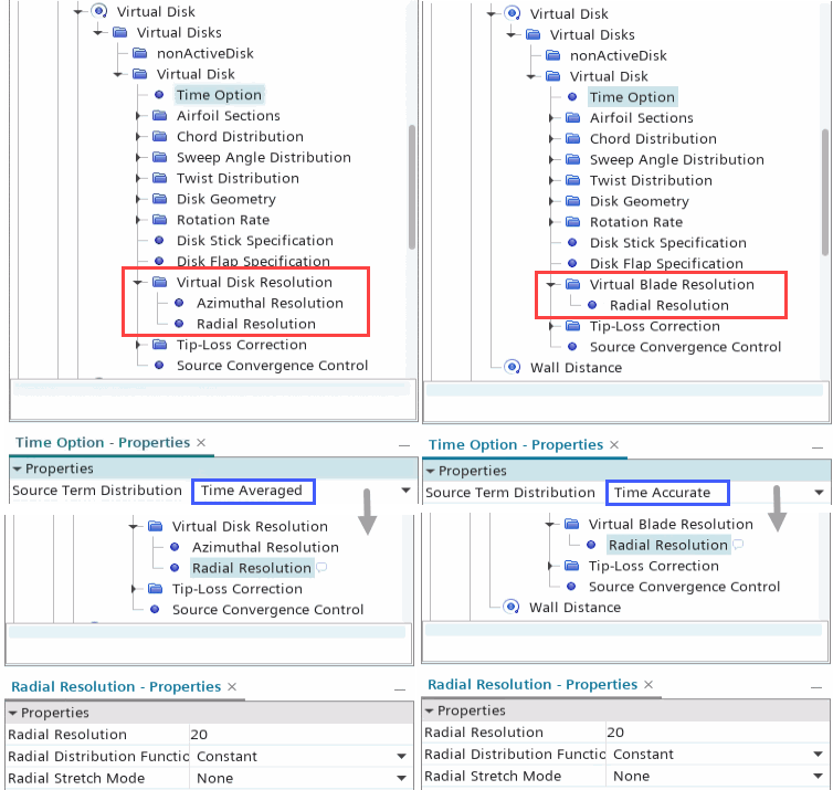 叶片单元法支持两个时间选项方法 - 平均时间(默认选项)和准确时间(仅适用于非稳态时间模型)。