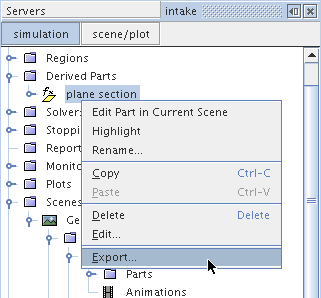 衍生零部件必须具有一个或多个输入零部件,否则 Simcenter STAR-CCM+ 会将其视为空。 尝试导出该零部件将失败并显示如下消息: