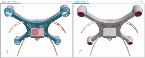 两个单独的表面控制分别应用于无人机机身和支腿,以改进几何的包面。