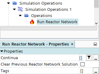 运行反应器网络节点可用于选择要运行反应器网络的连续体。它还提供了用于清除先前的反应器网络解的选项。确保模拟不包含不兼容反应器网络模型的设置。