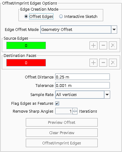 通过此模式,可使已定义的源边偏移到目标面上。这些边将压印到目标面上,从而可以量身定制表面拓扑。
