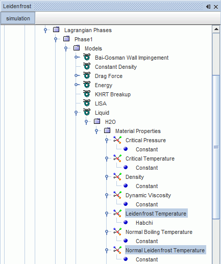 通过选择 Bai-Gosman 壁面碰撞或液膜沸腾模型,可在 或下的液体材料属性节点中提供莱登弗洛斯特温度。可以通过选择以下五种方法中的一种,设置莱登弗洛斯特温度: