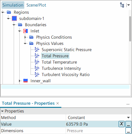 总压力设置是工作压力 101,325 Pa 的相对值。超音速静压也是滞止进口条件的必需部分,但只有在求解迭代过程中的某些情况下,入口速度达到超音速时使用。只要不出现超音速流,相对压力默认值 0.0 Pa 就足够了。