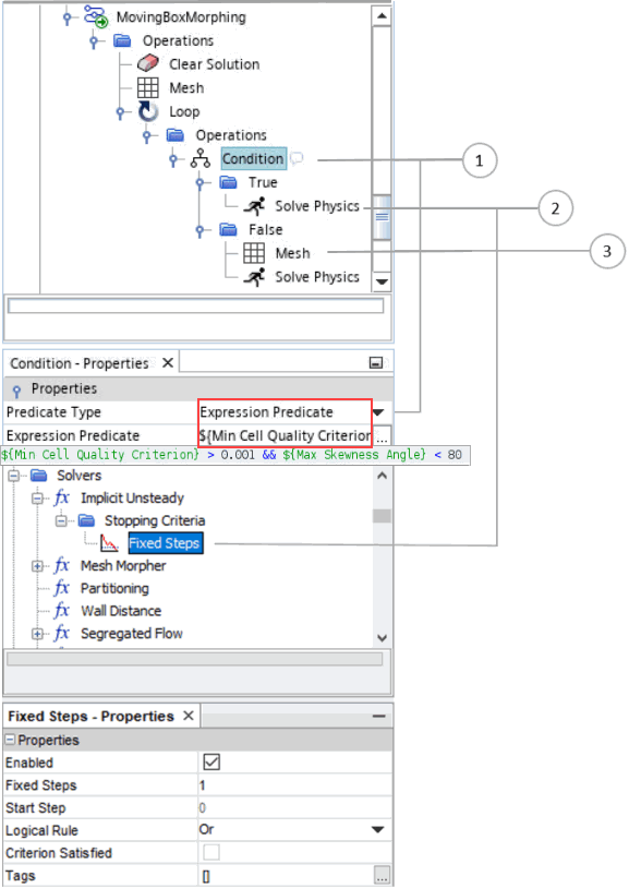 - 选择表达式谓词作为谓词类型并输入表达式 ${Min Cell Quality Criterion} > 0.001 && ${Max Skewness Angle} < 80。仅当两个不等式都成立时,此谓词计算结果才为 true。