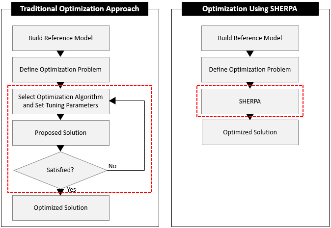下面显示了传统优化方法与 SHERPA 方法的比较。