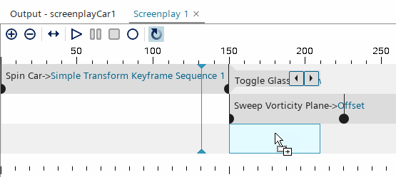 - 在模拟面板中,复制淡入节点,然后将其粘贴到动画剧本 1 节点上。重命名副本,淡出。