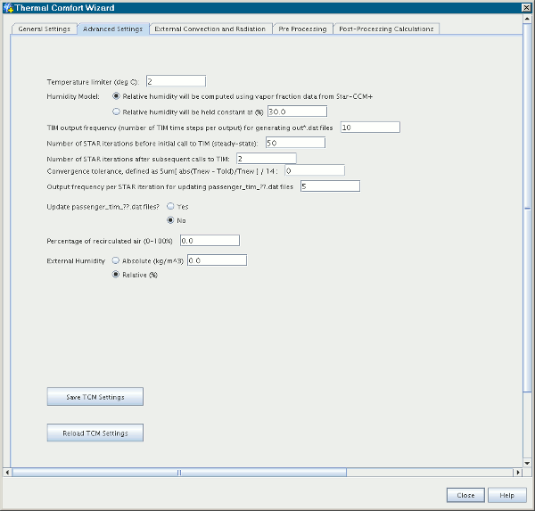 - 初始调用 TIM 之前的 STAR 迭代数 — 设置仅运行模型的 CFD 部分需要多少次迭代。 这也可指定执行乘客热计算之前所需的流场时间。