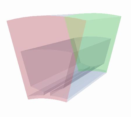 源表面分组显示在节点的“属性”中,并且在图形窗口中以绿色显示。目标表面分组显示在目标表面节点中且显示为红色。这些表面如下图所示(已打开场景透明度)。