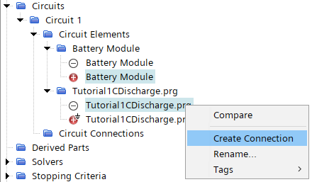 对剩余端子重复执行此操作:(-) 电池模块和 (+) Tutorial1CDischarge.prg。