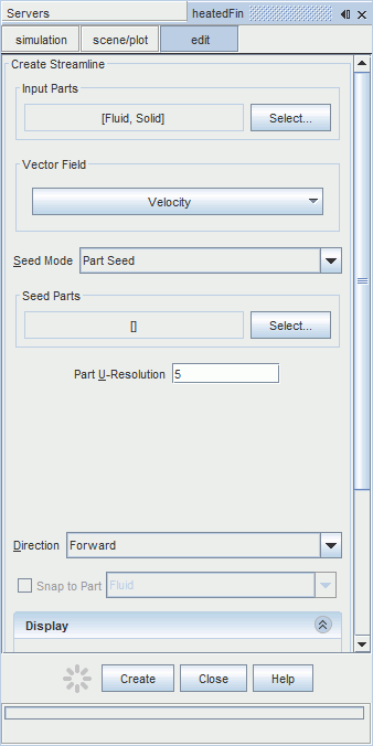 默认情况下,场景中包含“流体”区域和“固体”区域。如果只想显示流线: