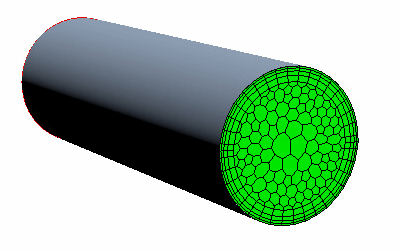 使用定向网格化时,可以使用自动 2D 网格操作来创建 2D 源面网格。通过此方法,可以在源表面上包括棱柱层。随后,系统将沿相连零部件的长度对其执行扫掠。