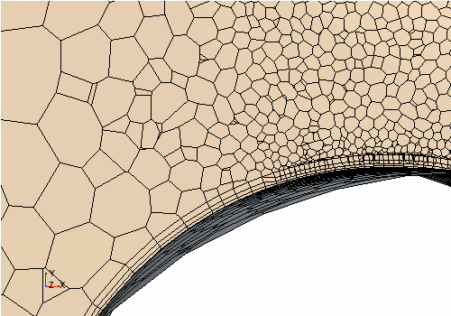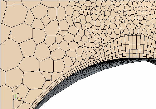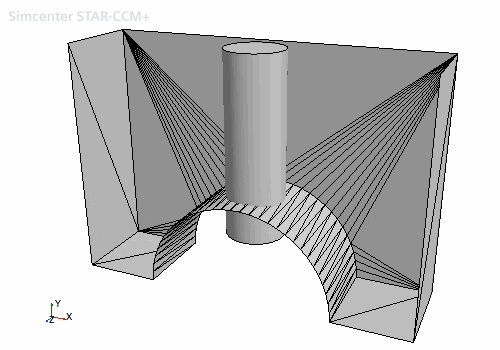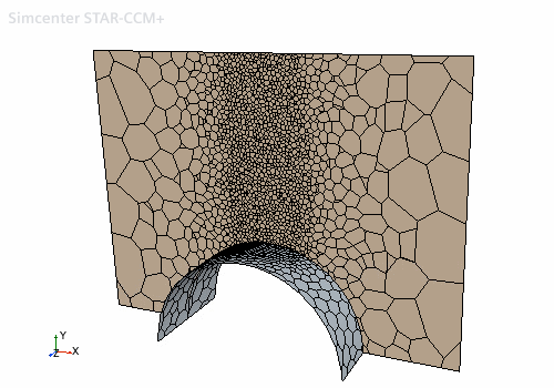 使用体积控制,可加密任何面网格生成器或体网格生成器的边界表面和核心网格单元。要粗糙化网格,只能粗糙化四面体网格生成器和多面体网格生成器的核心网格单元,无法粗糙化边界表面上的面。