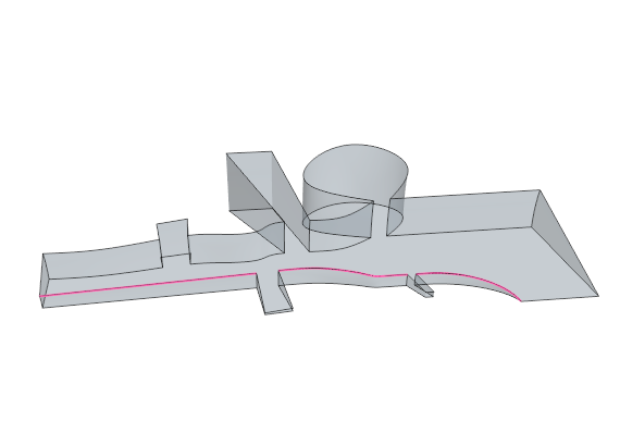 此衍生部件在场景中显示为一条简单的线,因为 2D 表面已平均为 1D 分布。这表明它与表面输入一致。
