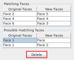 - 如果没有与旧面匹配的新面,则在非匹配面列表中,停用该行的具有匹配面复选框。