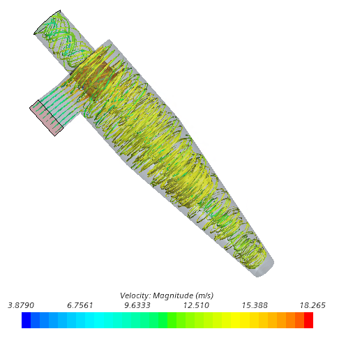 流线是作为衍生零部件创建的。在此情况下,将从气旋入口追踪流线。