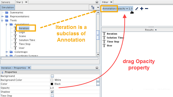 例如,注释类型的迭代、标志和简单文本具有不同的属性集,但也共享不透明度属性。 此共享将对象的共有类显示为注释。 因此,将注释的属性拖放到查询编辑器时,谓词的外观取决于选择的属性。