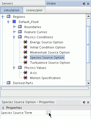 - 选择区域的物理条件文件夹中的组分源选项节点。