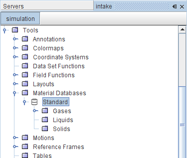 默认情况下,选择材料模型后,名为标准的材料数据库对象将自动加载到新模拟中。此对象会访问位于 Simcenter STAR-CCM+ 安装主目录 (Windows) 或位于该目录的 star 子目录 (Linux) 中的 props.mdb 文件。