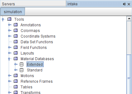 - 尝试选择材料模型后,材料数据库节点将显示在对象树中,但是不具有数据库文件夹节点。(在现有模拟文件中,数据库文件夹节点也仅包含引用的材料。)
