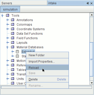 - 通过右键单击材料数据库节点,然后选择保存,将值保存到数据库文件。