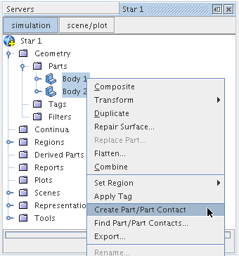 选择相关的零部件节点,右键单击并从弹出菜单中选择创建零部件/零部件的接触: