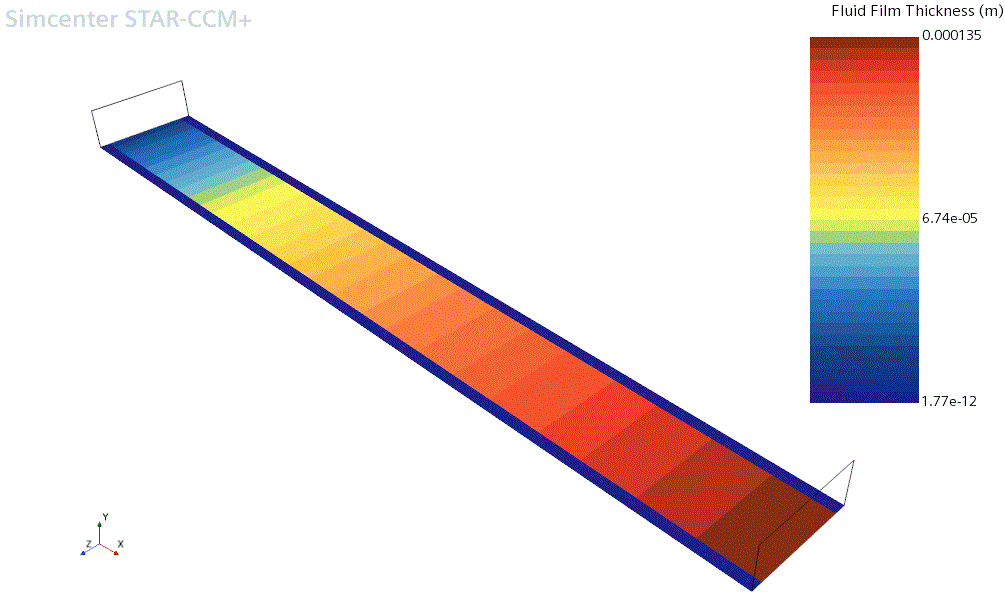 本教程演示如何使用 Simcenter STAR-CCM+ 的液膜建模功能。它模拟了沿三维导管的水流动的矩形膜的过程。