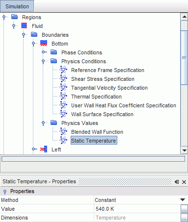 节点 属性 设置 静态温度 值 370 K 体积分数 值 [1.0, 0.0]