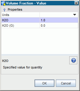节点 属性 设置 静态温度 值 350 K 速度幅值 值 1 m/s 体积分数 值 [1.0, 0.0] -