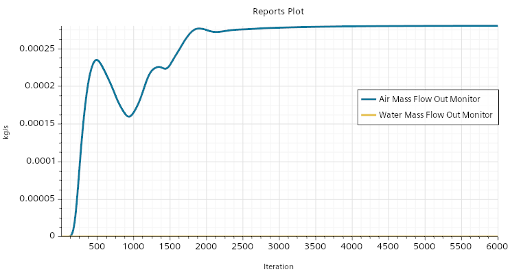 To analyze the outflow phase mass flow rate plots, select the Reports Plot tab at the top of the Graphics window.