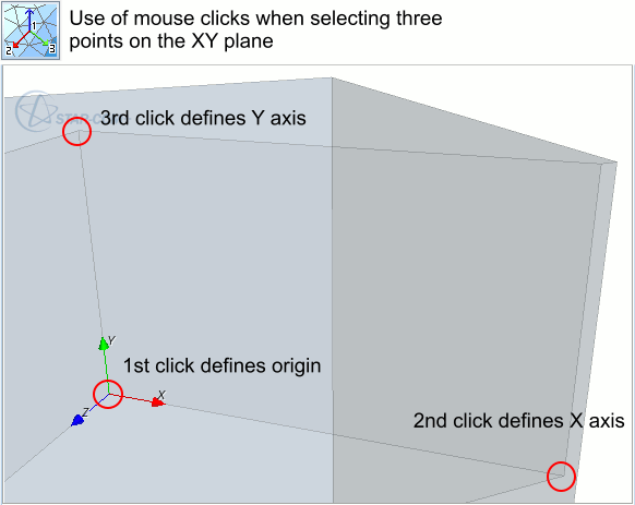 左侧的图标可激活用于指定三个点的工具,这些点用于定义 XY 平面。