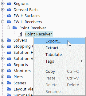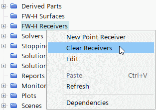 要清除点接收器的求解数据,右键单击 FW-H 接收器管理器节点并选择清除接收器。