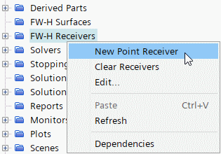 要将点接收器添加到模拟,右键单击 FW-H 接收器管理器节点并选择新点接收器。设置属性。