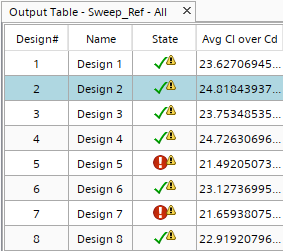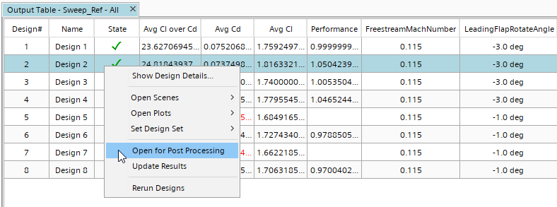 或者,也可以仅更新选定设计的结果,如下所示:- 在输出表中,使用 <ctrl> 键选择多个目标设计,然后右键单击并选择更新结果。