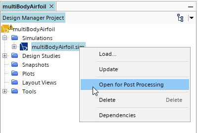 使用设计管理器,可在设计研究已运行后在单个模拟(设计或参考)中创建其他后处理对象,然后对所有设计执行更新,以使其仿真文件也接收其他对象。保存每个设计的模拟文件时,此方法最适用。