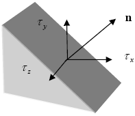 一般情况下,作用于体的平面截面上的应力由矢量 (称作应力矢量或拉力)定义如下: