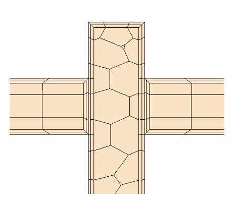 当几何的薄体部分有多个边界时,不会在边界表面上创建棱柱体网格单元,而是在体积内部创建棱柱层,以避免属于不同边界的棱柱层之间发生混淆。