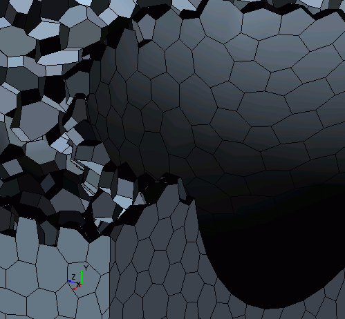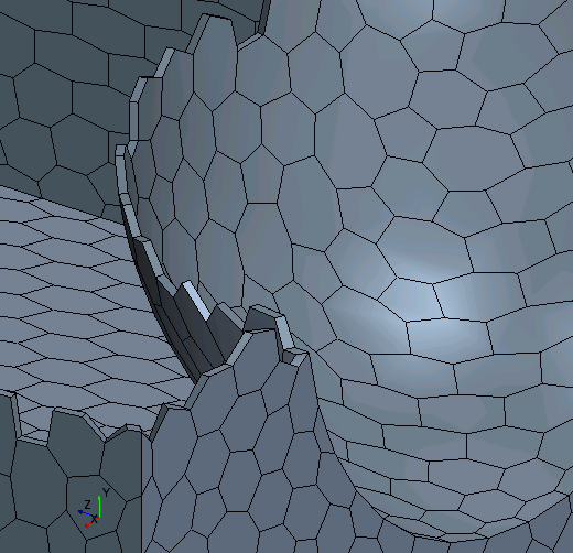 在此示例中,显示了一个网格单元厚度的多面体网格单元的外层: