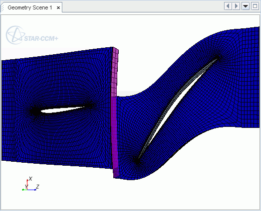 This interface makes it possible to simulate the flow across stages with different pitches moving relative to one another. At the interface, circumferentially averaged flow field data is transferred between two rotationally periodic regions. These regions must be of the same continuum, and aligned on the same axis. The mixing plane interface type is available on indirect interface topologies only.