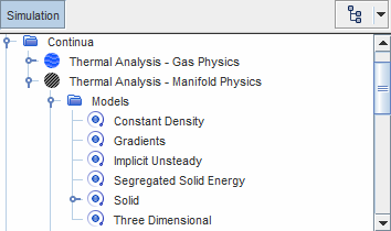 - 创建一个名为 Thermal Analysis - Manifold Physics(热分析 - 歧管物理) 的物理连续体。