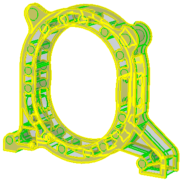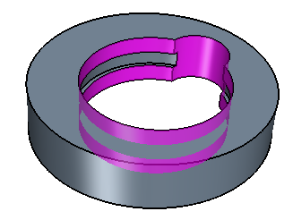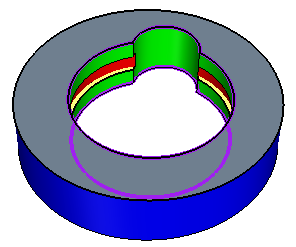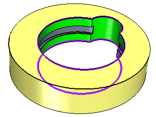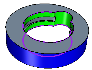 在以下示例中,去特征的主要目的是移除内通道。下图显示了一系列围绕内通道的面,以紫色高亮显示。
