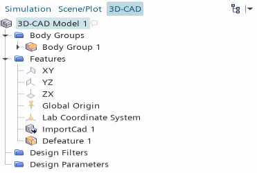 - 要仅对所选体执行操作,保持将体设为已选择。通过在选择体方框中单击然后在 3D-CAD 视图场景中选择体,可以选择额外的体。