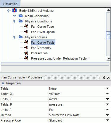 在设置风扇交界面时,可以将风扇性能曲线指定为表。