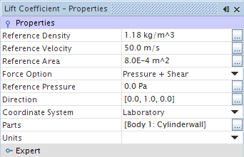 属性 设置 参考密度 1.18 kg/m^3 参考速度 50 m/s 参考面积 8E-4 m^2 部件