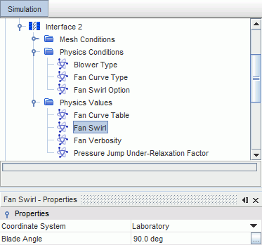 风机旋流建模 可在模拟中对风机旋流建模。 将旋流添加到流体的选项仅适用于“叶轮”类型的风机。 要指定风机旋流: 展开交界面 > [交界面名称] > 物理条件节点,然后单击风扇旋流选项。 在属性窗口中,将风扇旋流选项设为已计算。 风扇旋流节点随即添加到物理值。 在属性窗口中,设置适当的值。