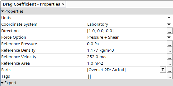 - 选择升力系数报告,然后在属性对话框中,将方向设为 [0.0, 1.0, 0.0]。