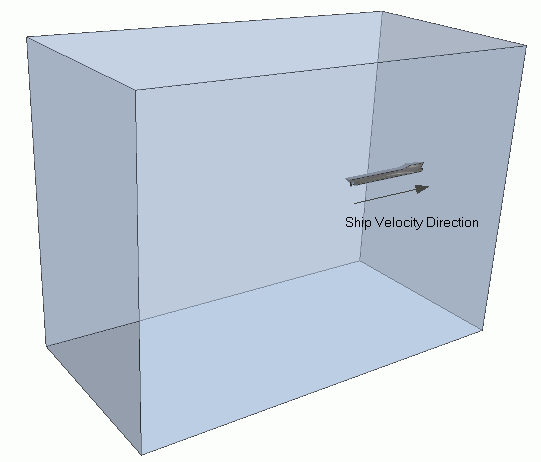 要通过实验获取阻力数据,请拖曳船体通过拖曳试验池。为了获得等效模拟,船保持在固定位置处,在上游入口边界处指定入口速度。此入口速度将产生相对移动。船可自由升降和纵摇。模拟从平静的水面开始,船体的底部与自由表面平行。使用弗劳德数 Fn = 0.2599 执行计算。