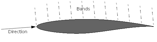 Simcenter STAR-CCM+ starts creating bands by locating the beginning and end of the object along the direction that you specify. (Specify the direction with the Direction property of the force, force (harmonic) and force coefficient reports, or the Axis property of the moment and moment coefficient reports.) The Direction is interpreted in the specified Coordinate System for the report. However, the force and moment quantities returned by the Java macro calls are always computed in the laboratory coordinate system, not in the specified Coordinate System. The overall force and moment quantity returned by the report is computed in the specified Coordinate System, but the banded values are only computed in the laboratory coordinate system.