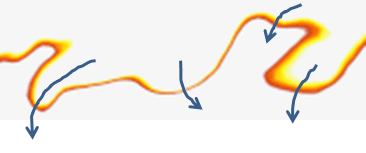 在下图中,深色区域显示薄反应前锋,其中反应发生速度快于湍流混合。中间体组分不会存在很长时间,因而无法由湍流混合输运到反应前锋之外。