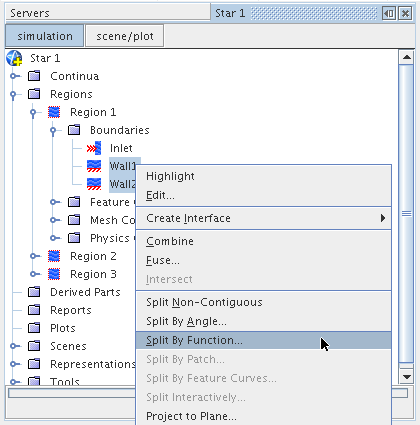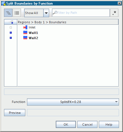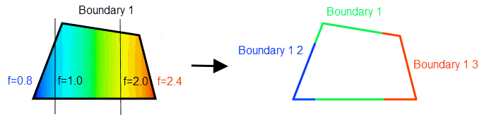 | 注 | 具有的面最多的边界将保留原始边界的名称。新边界的命名约定参照边界中面数的升序顺序。例如,如果场函数通过边界 1 创建两个新边界,则具有最少面数的新边界为边界 1 2,具有最多面数的新边界为边界 1 3。 |